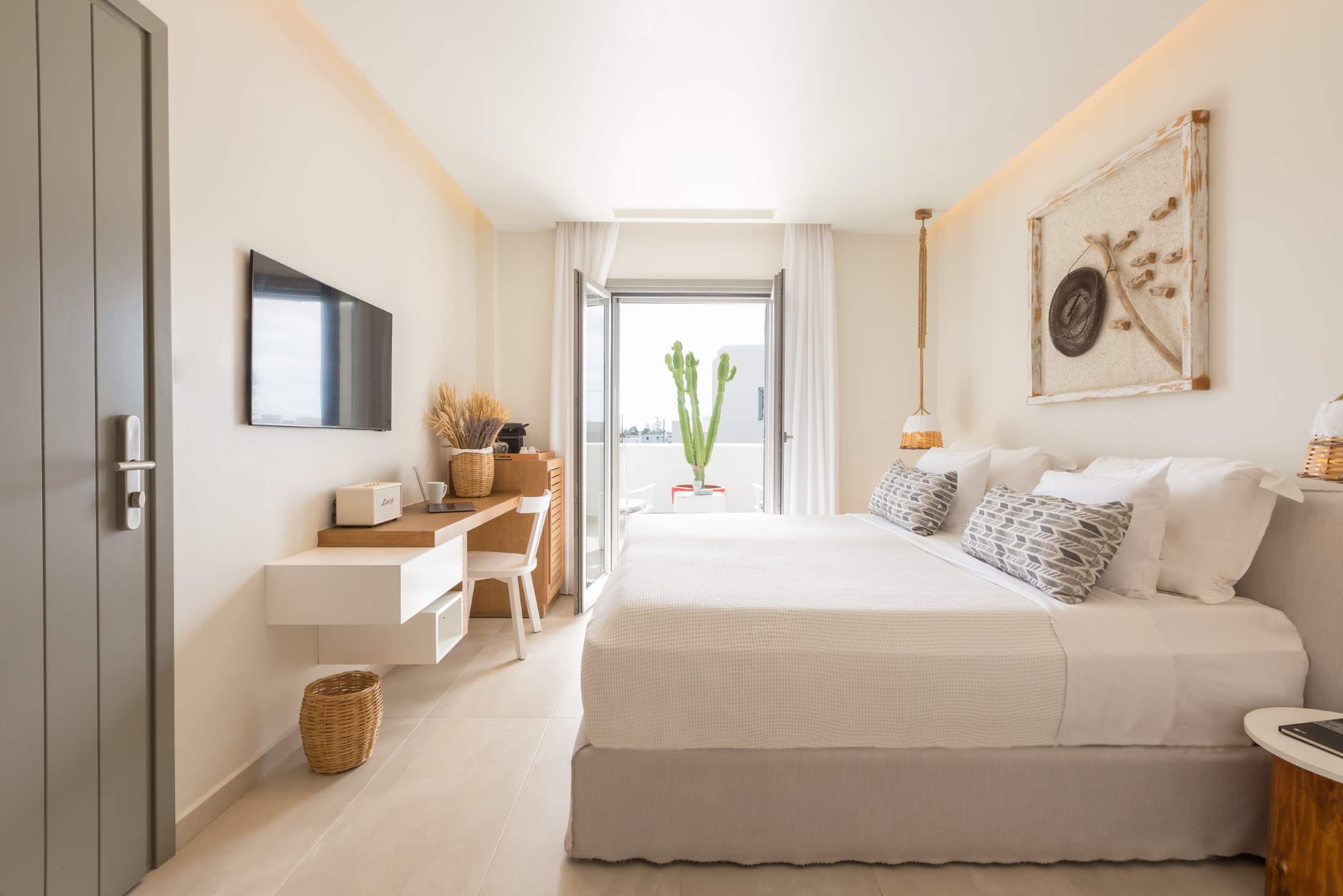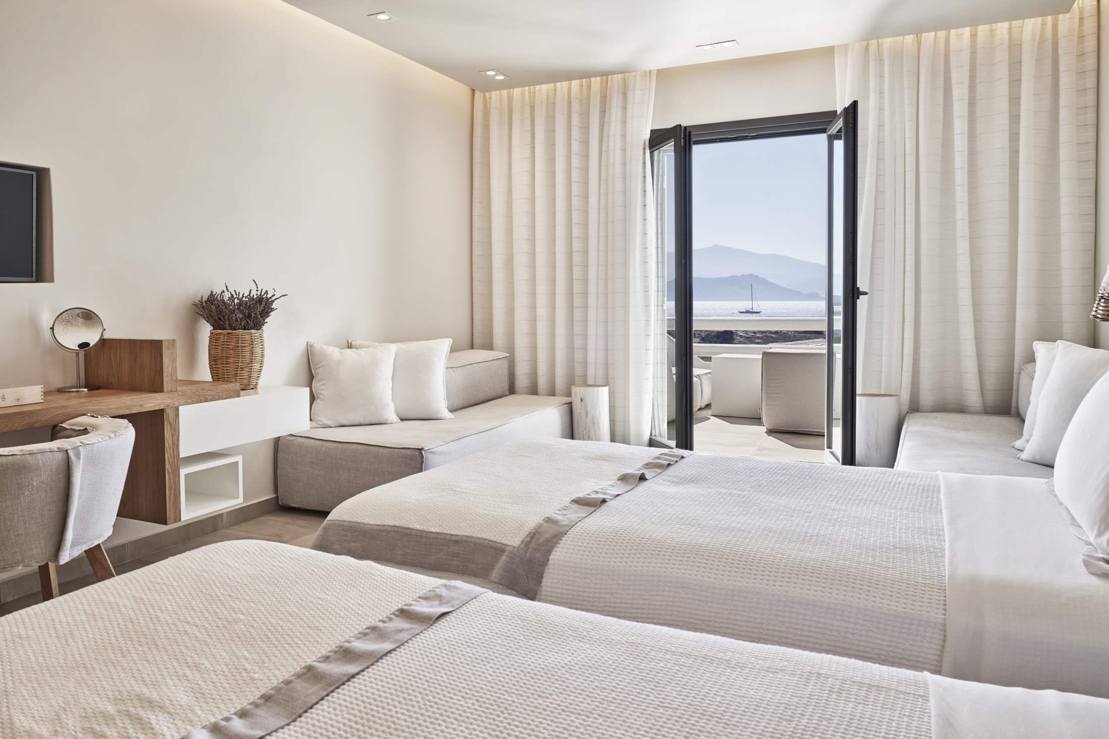 The sunny mindset of the 18 Grapes is illustrated in its exquisite Suites and Rooms collection, that through a calming earthy palette and a captivating soft minimalism, perfect the essence of Cycladic-chic leisure.